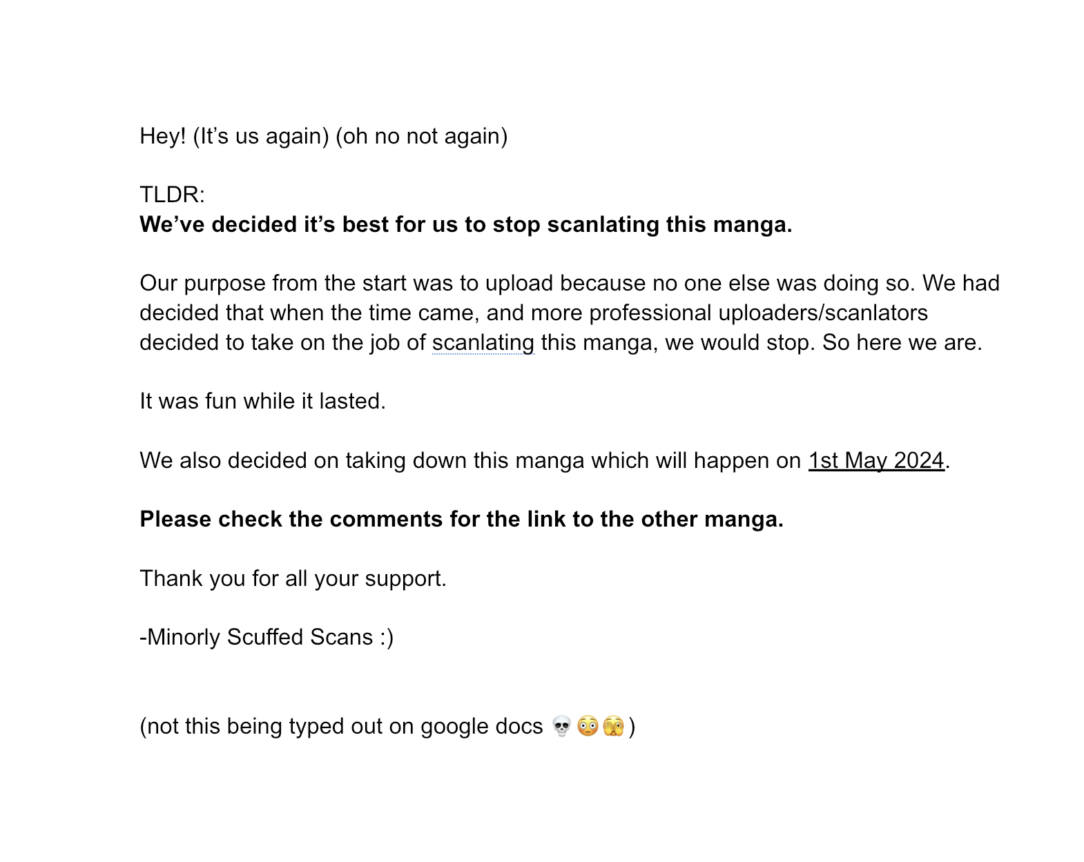 Notice of Cancellation (of our upload)