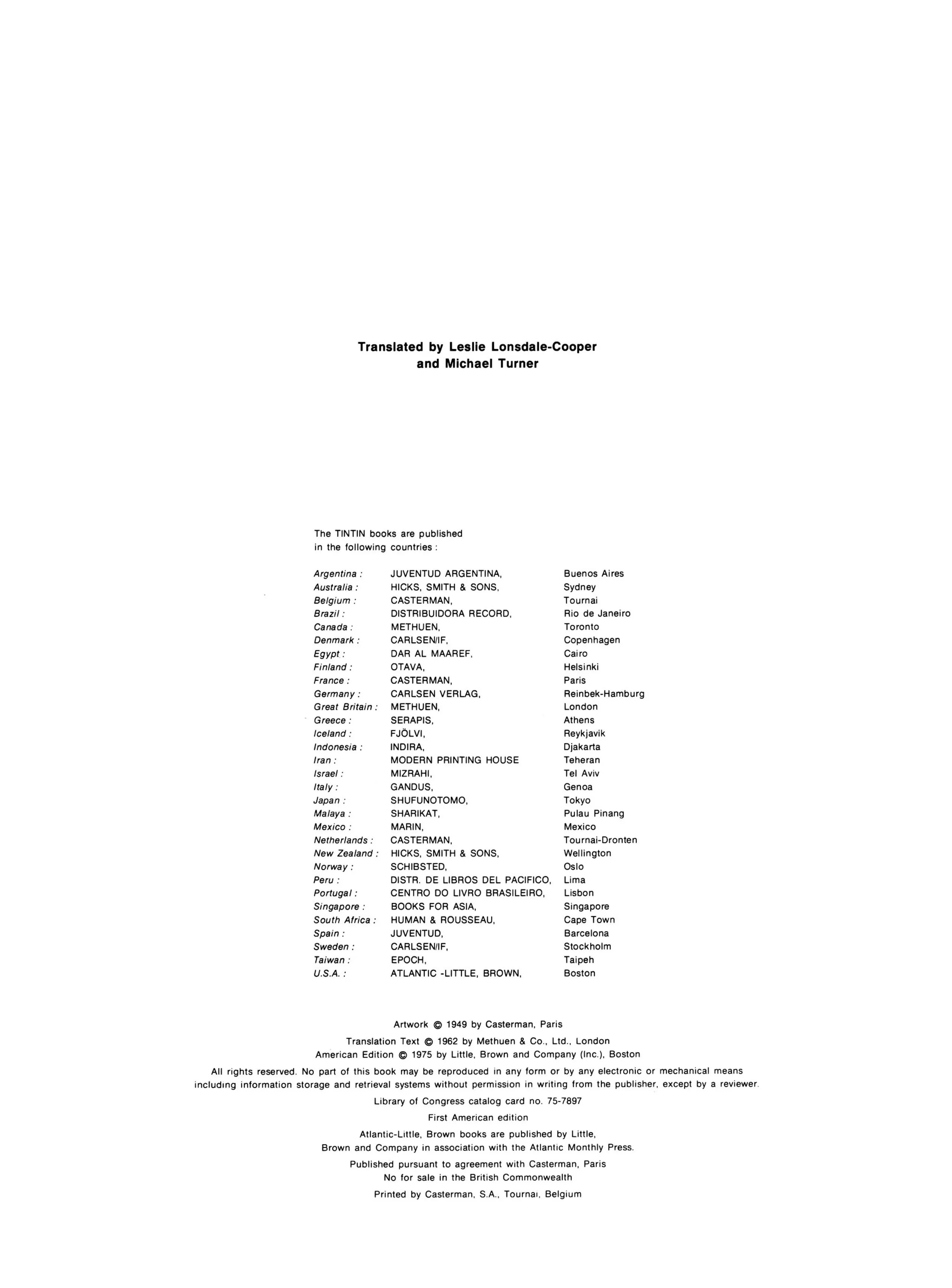 - Hergé, 1949, Prisoners of the Sun, The Adventures of Tintin, Book 14, 9780316358439