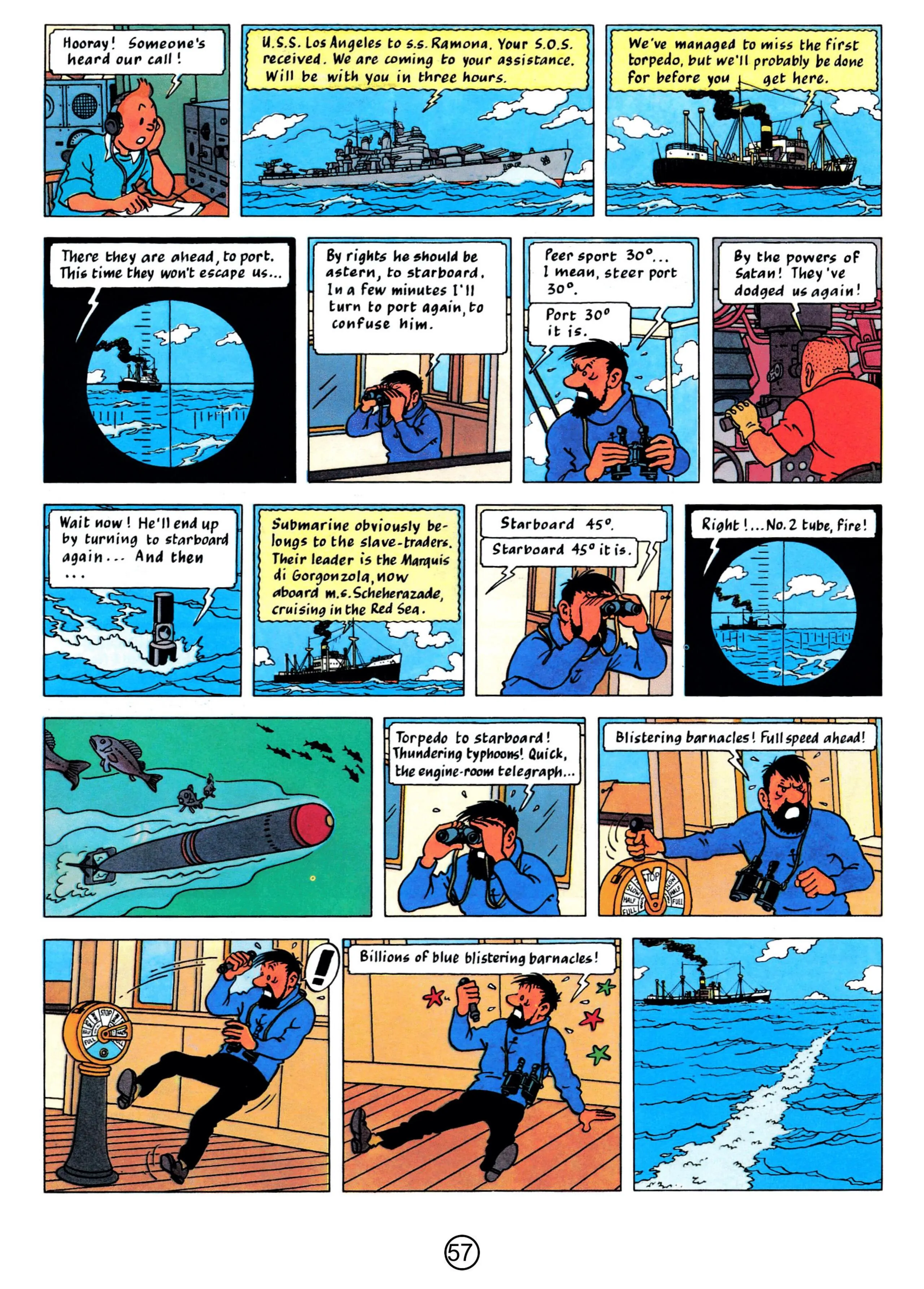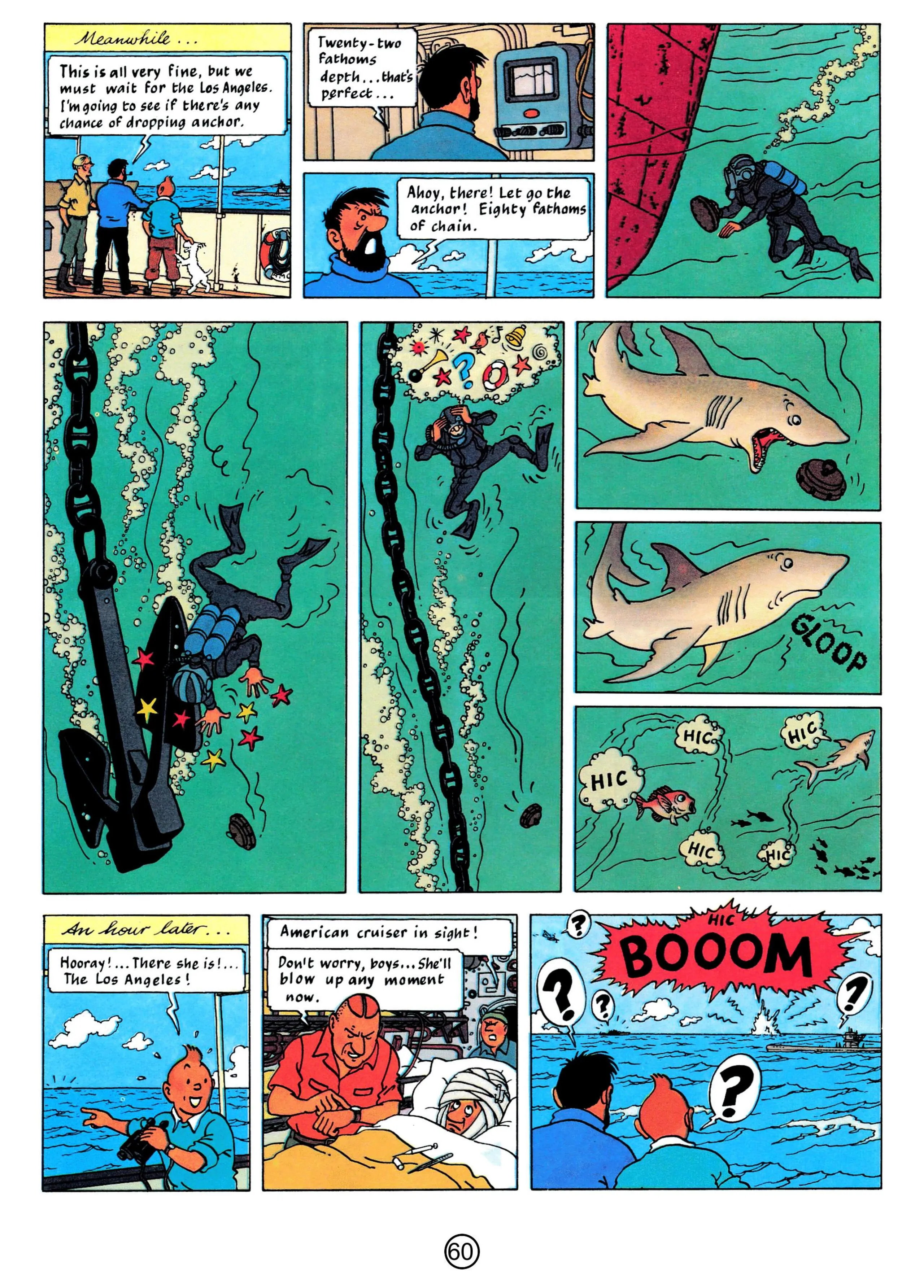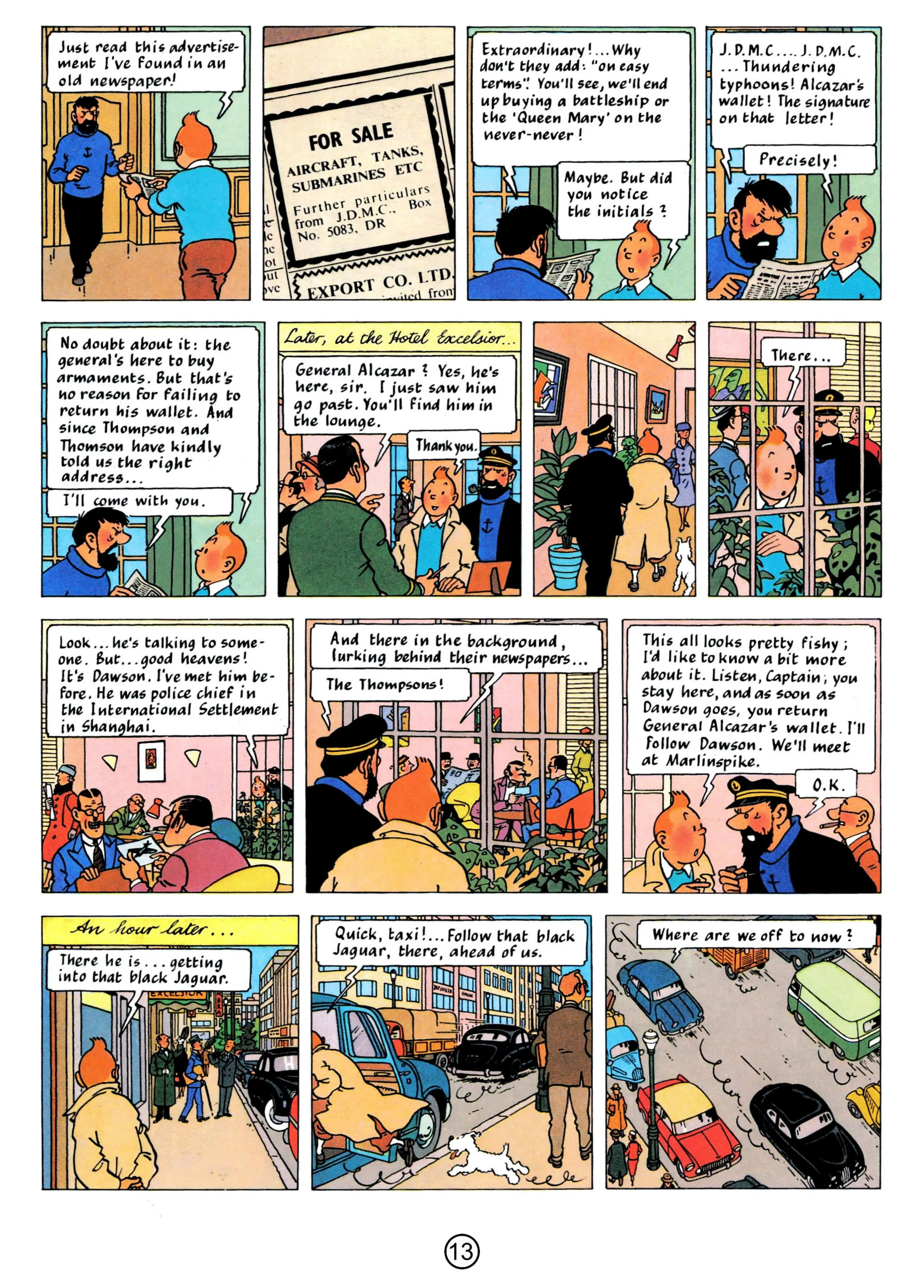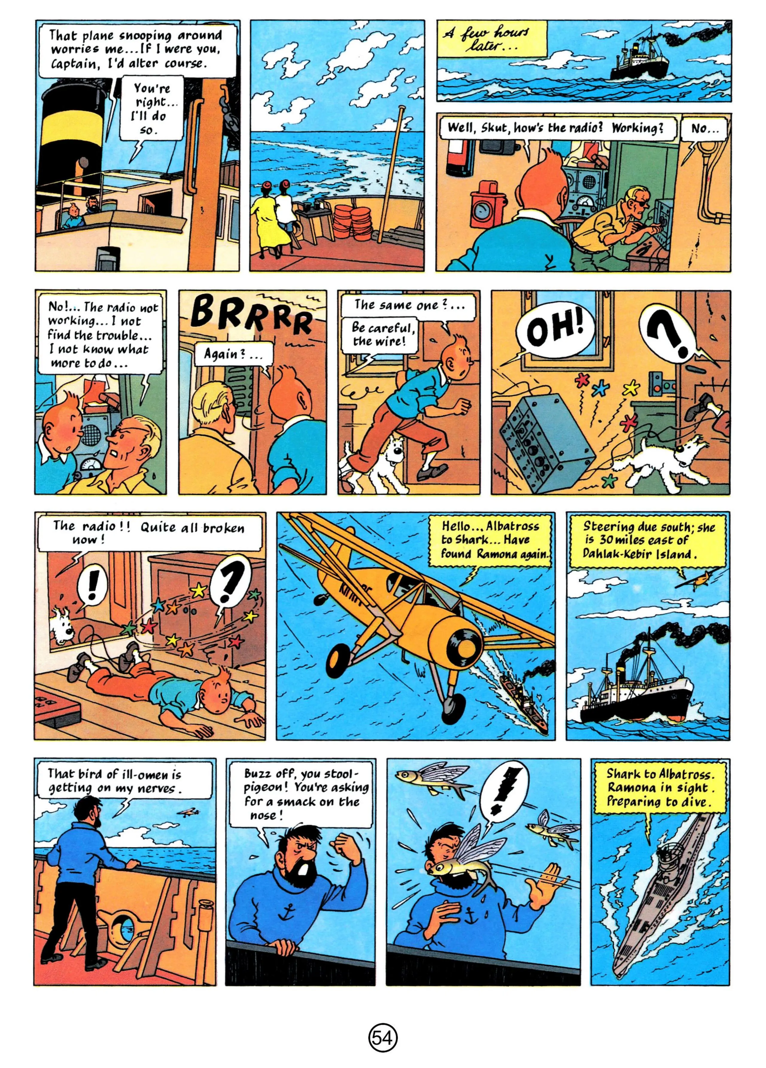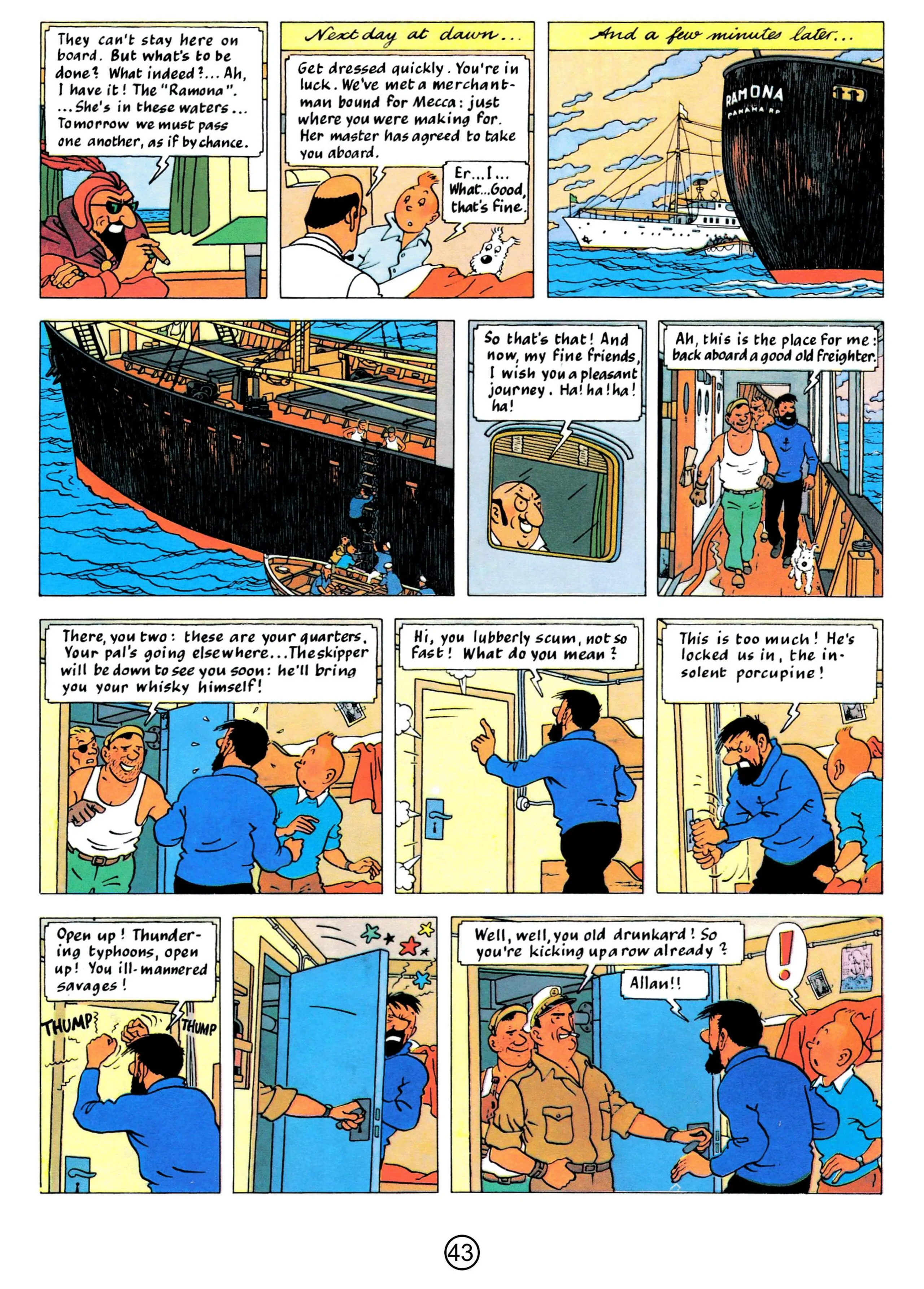 - Hergé, 1958, The Red Sea Sharks, The Adventures of Tintin, Book 19