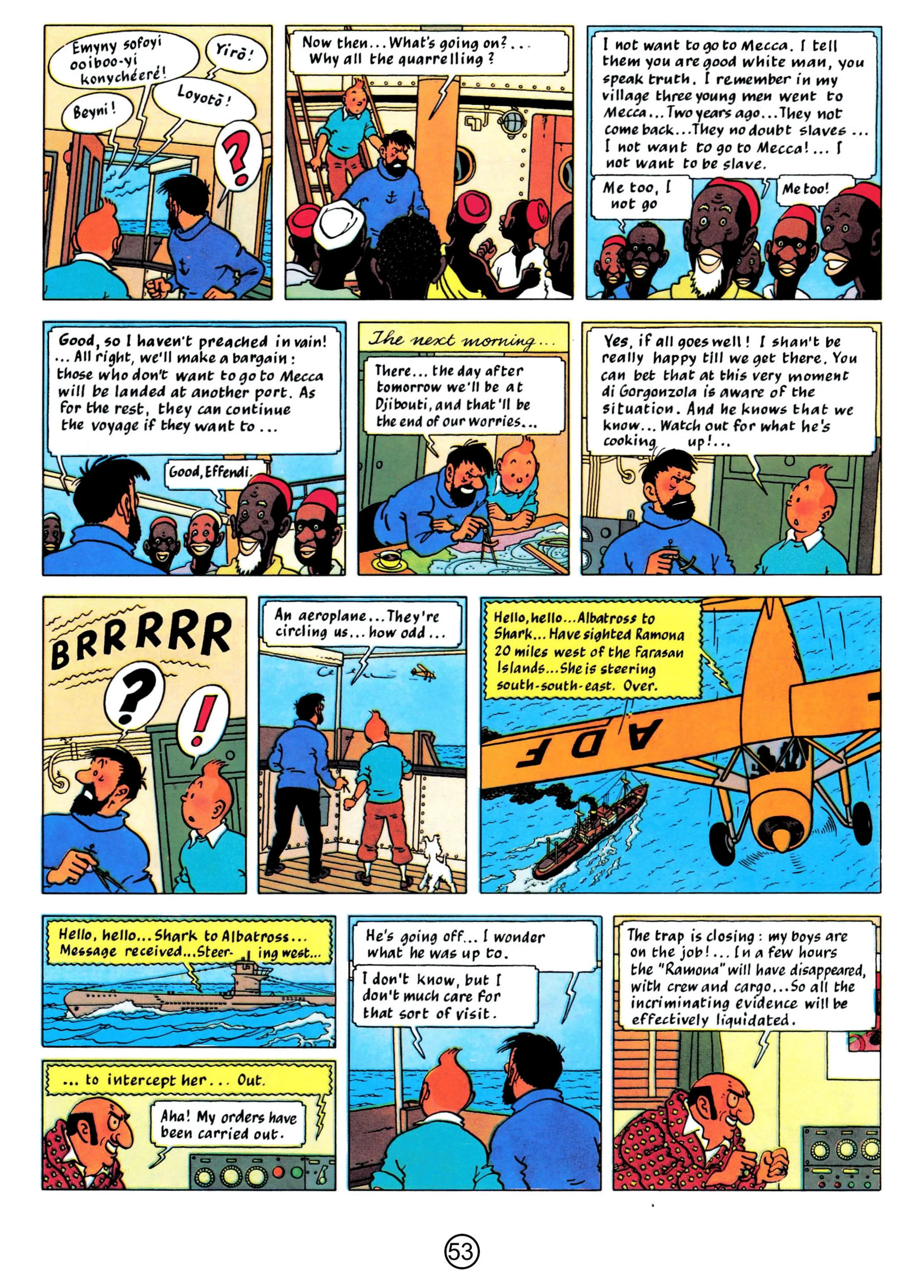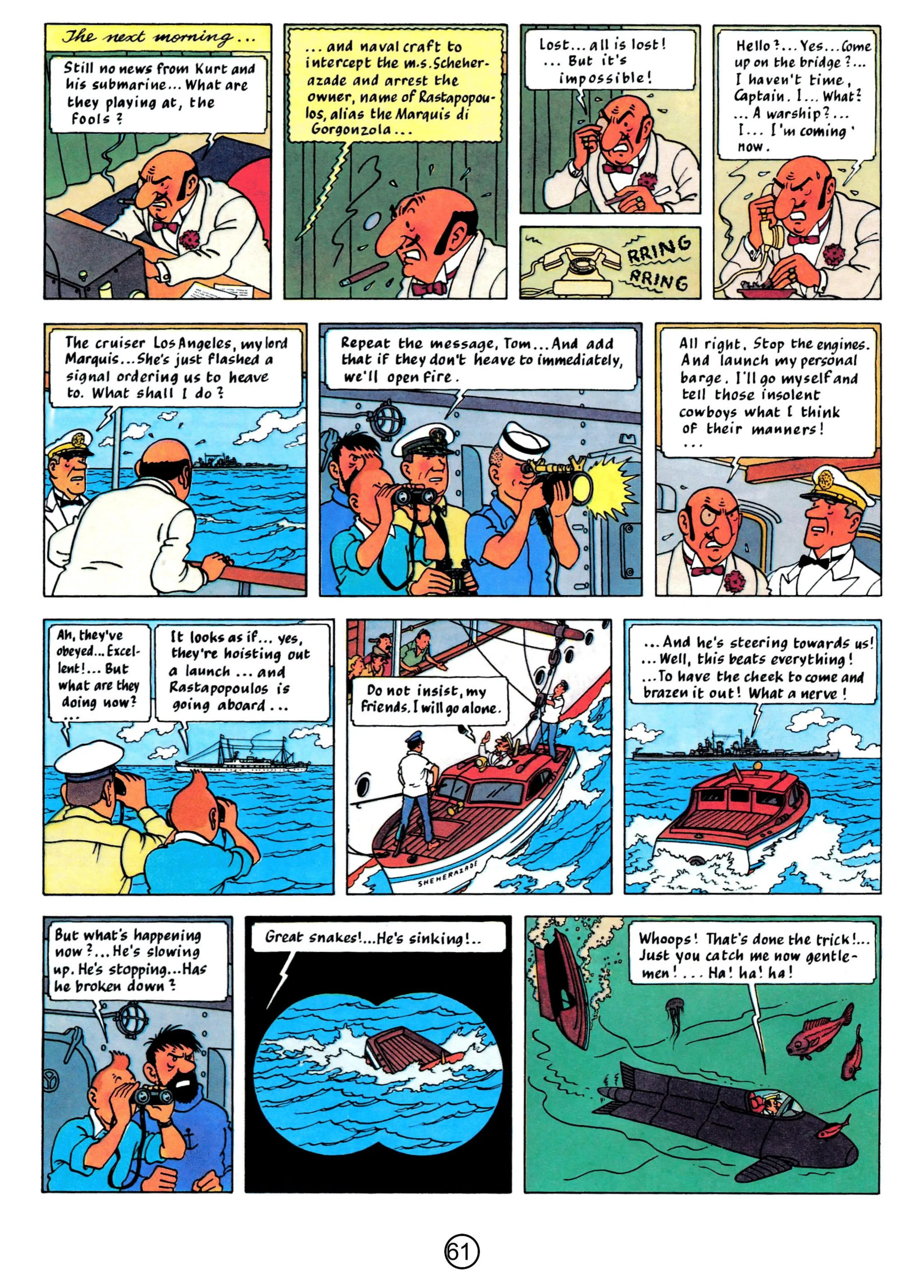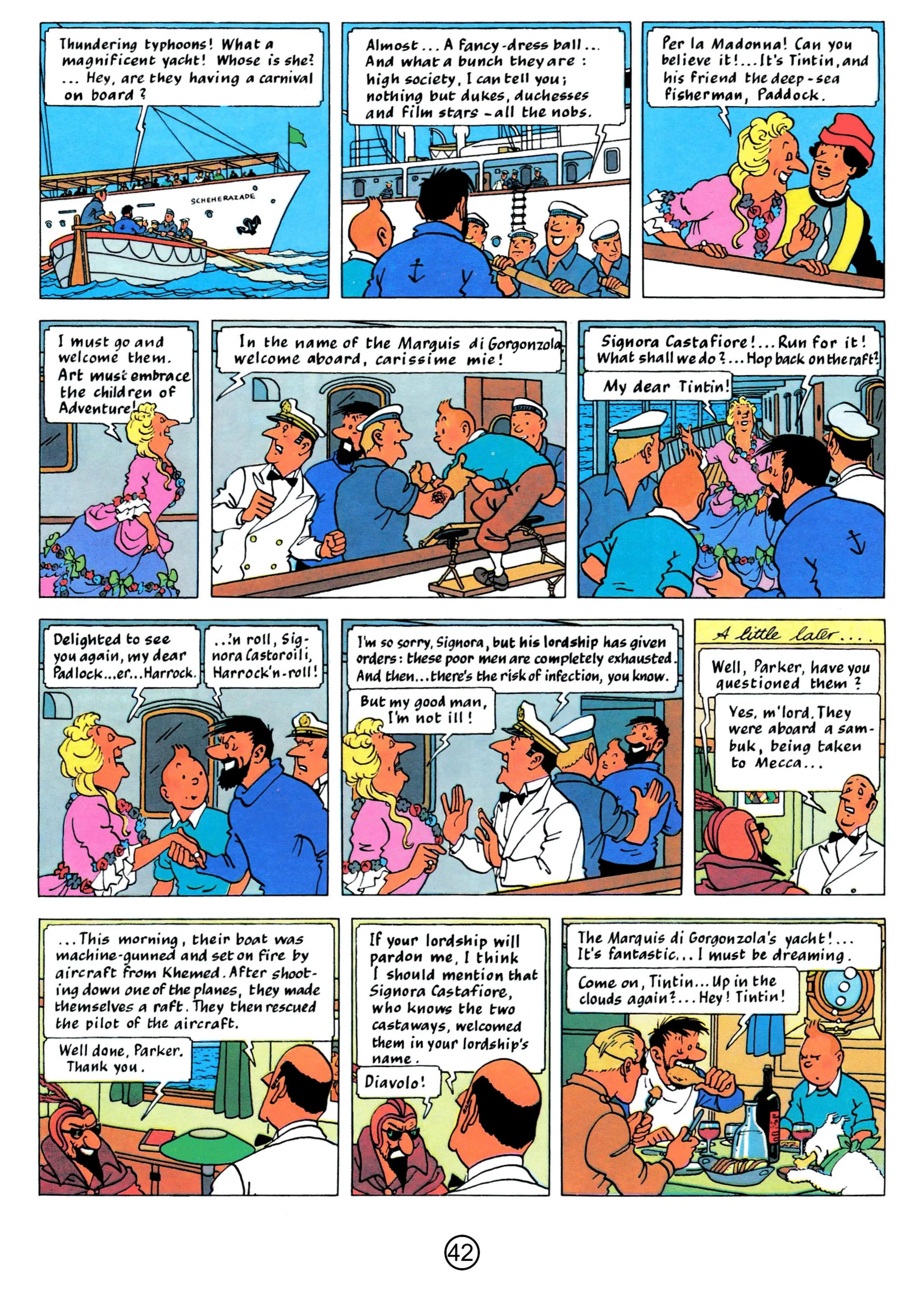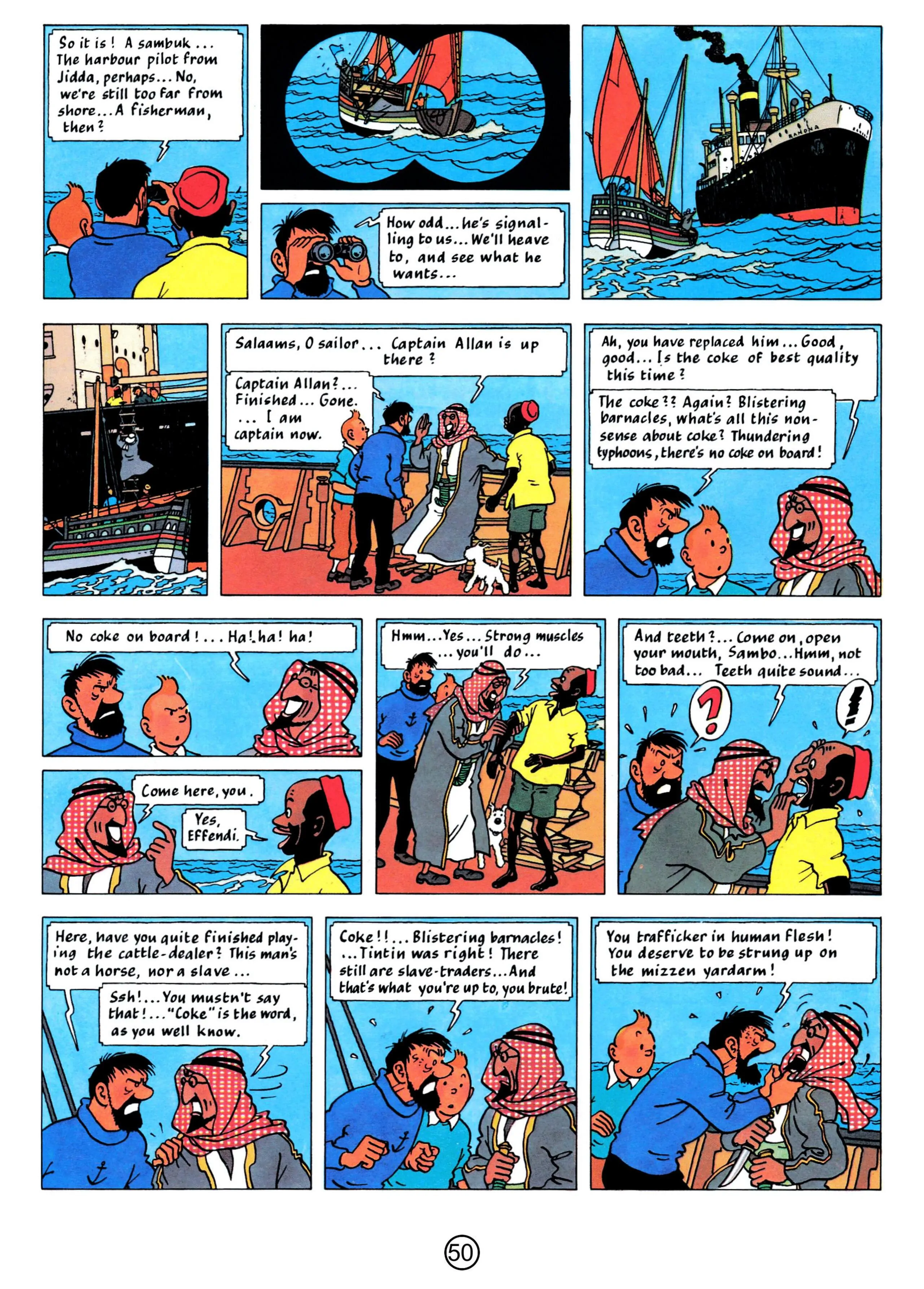 - Hergé, 1958, The Red Sea Sharks, The Adventures of Tintin, Book 19