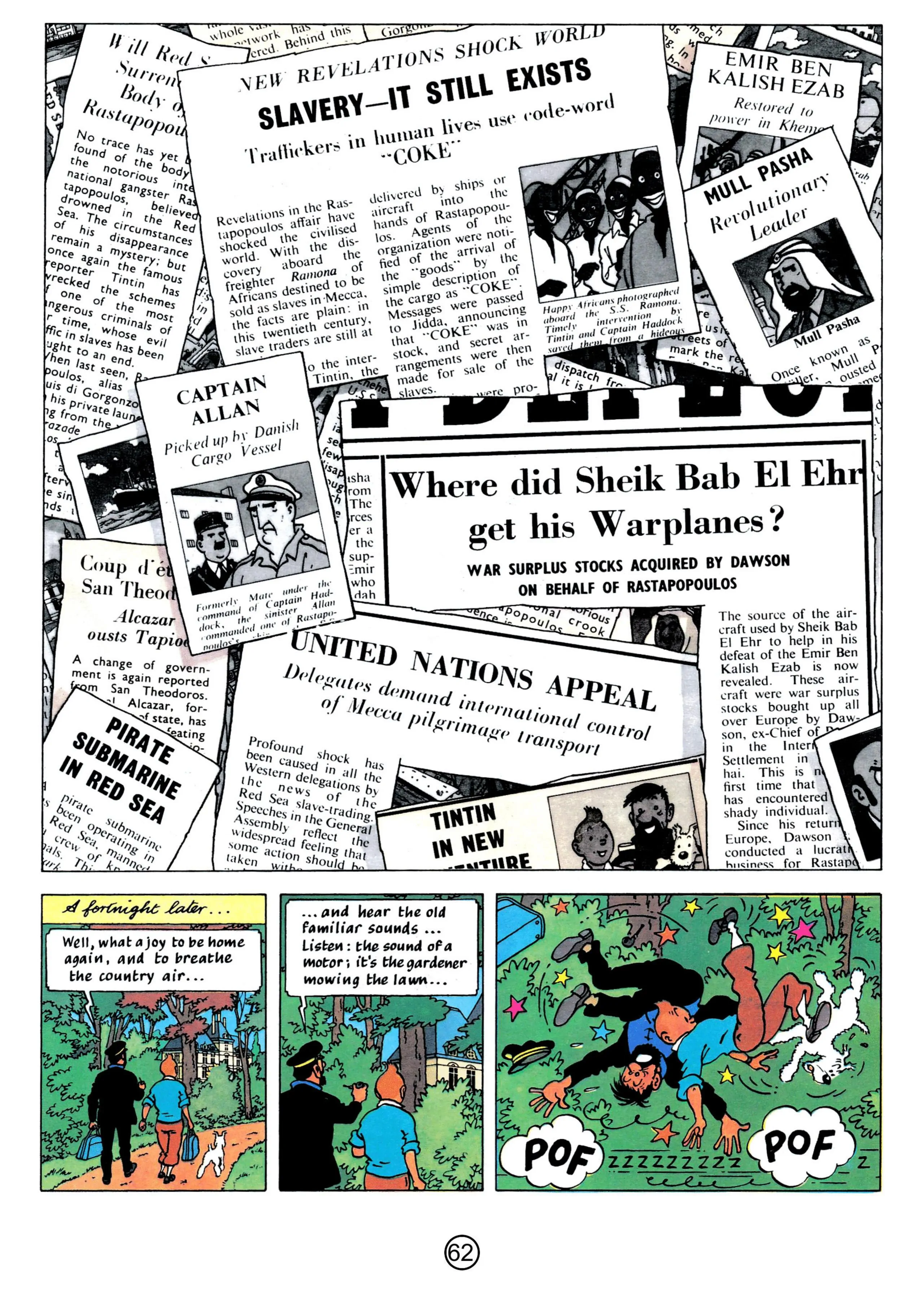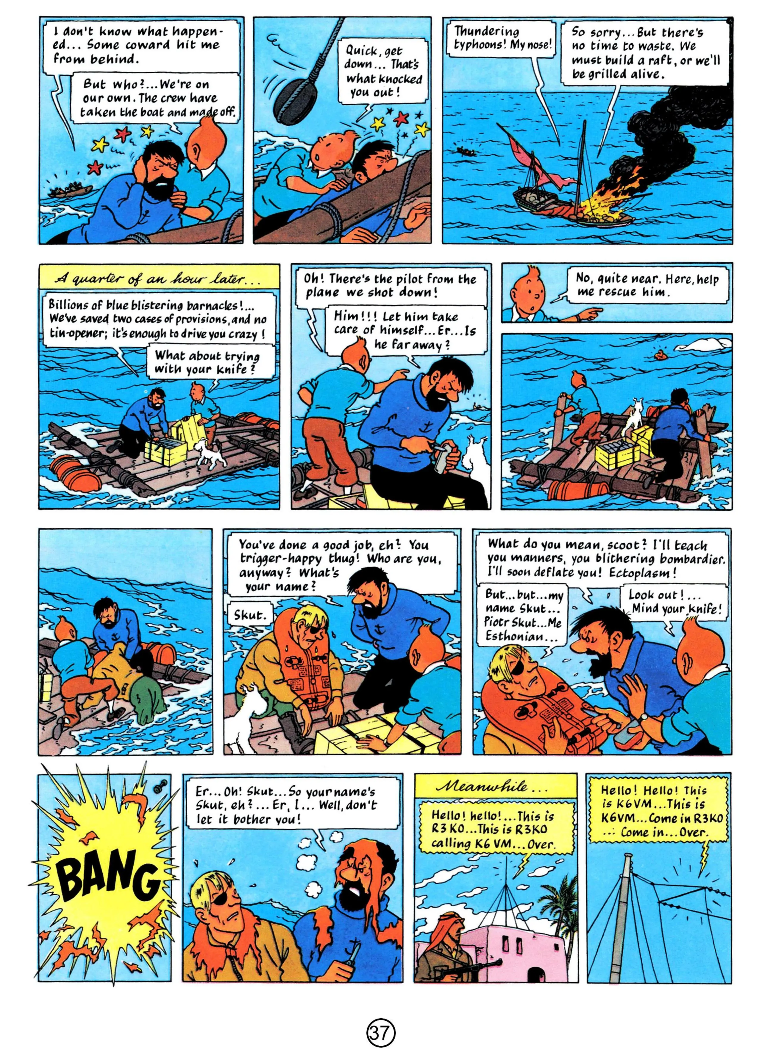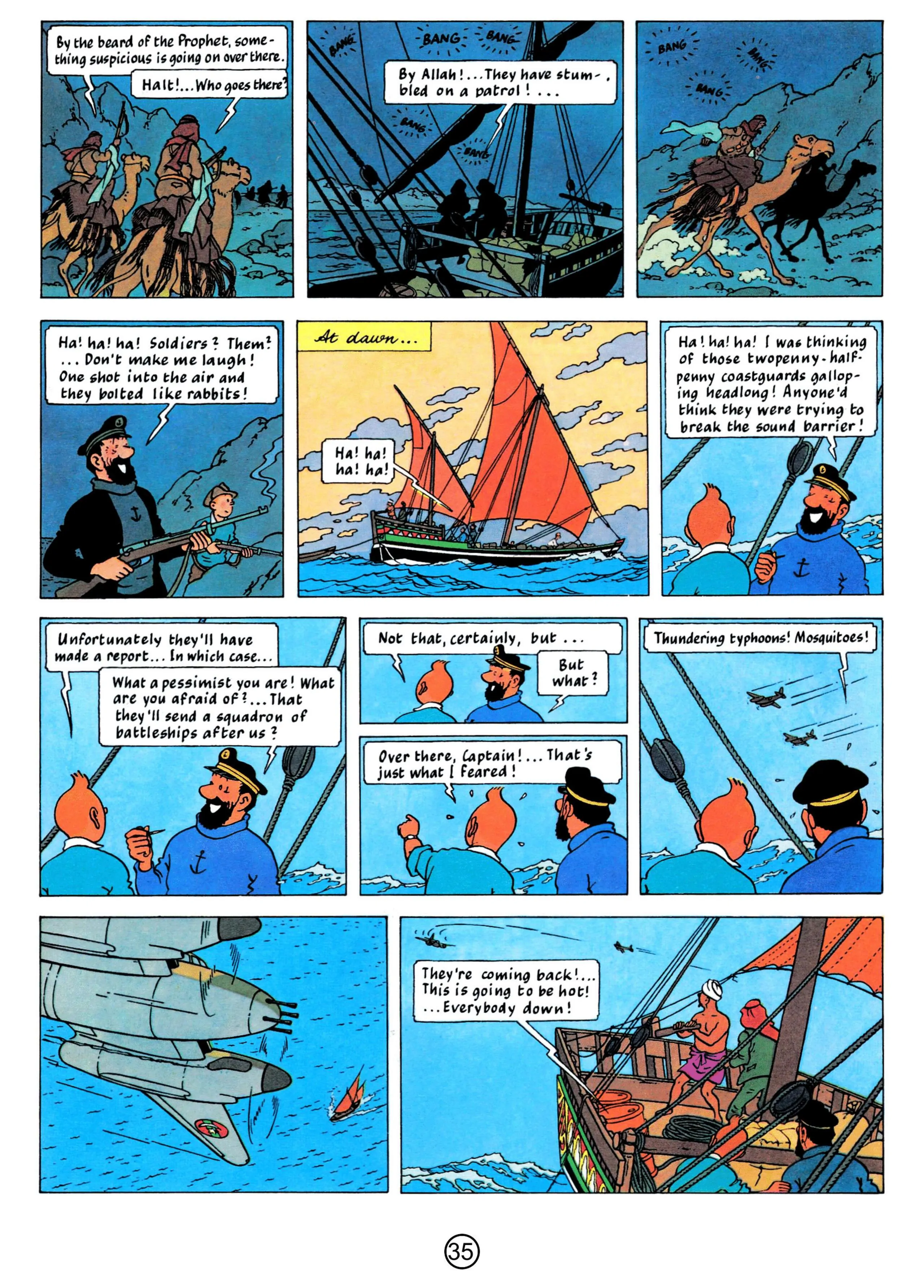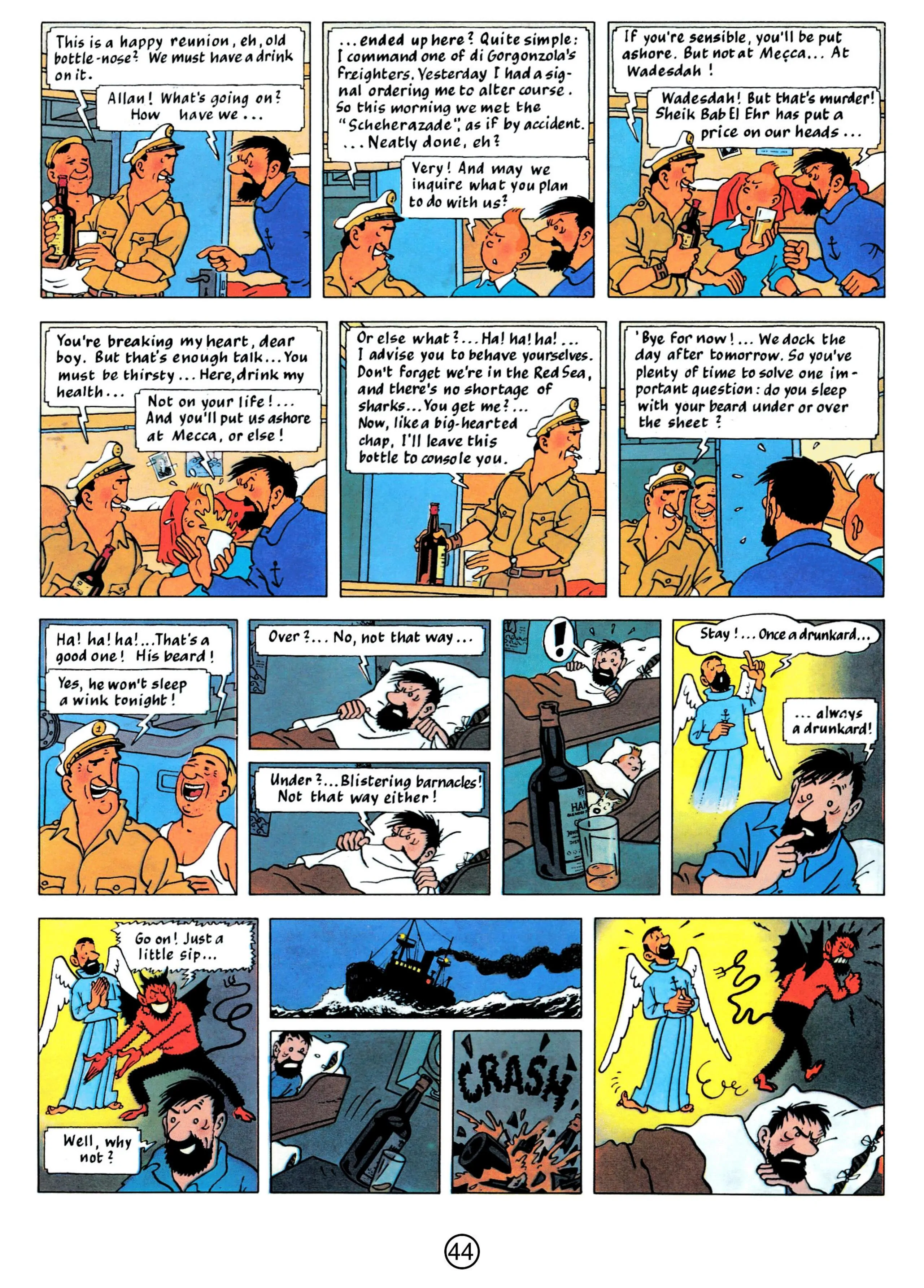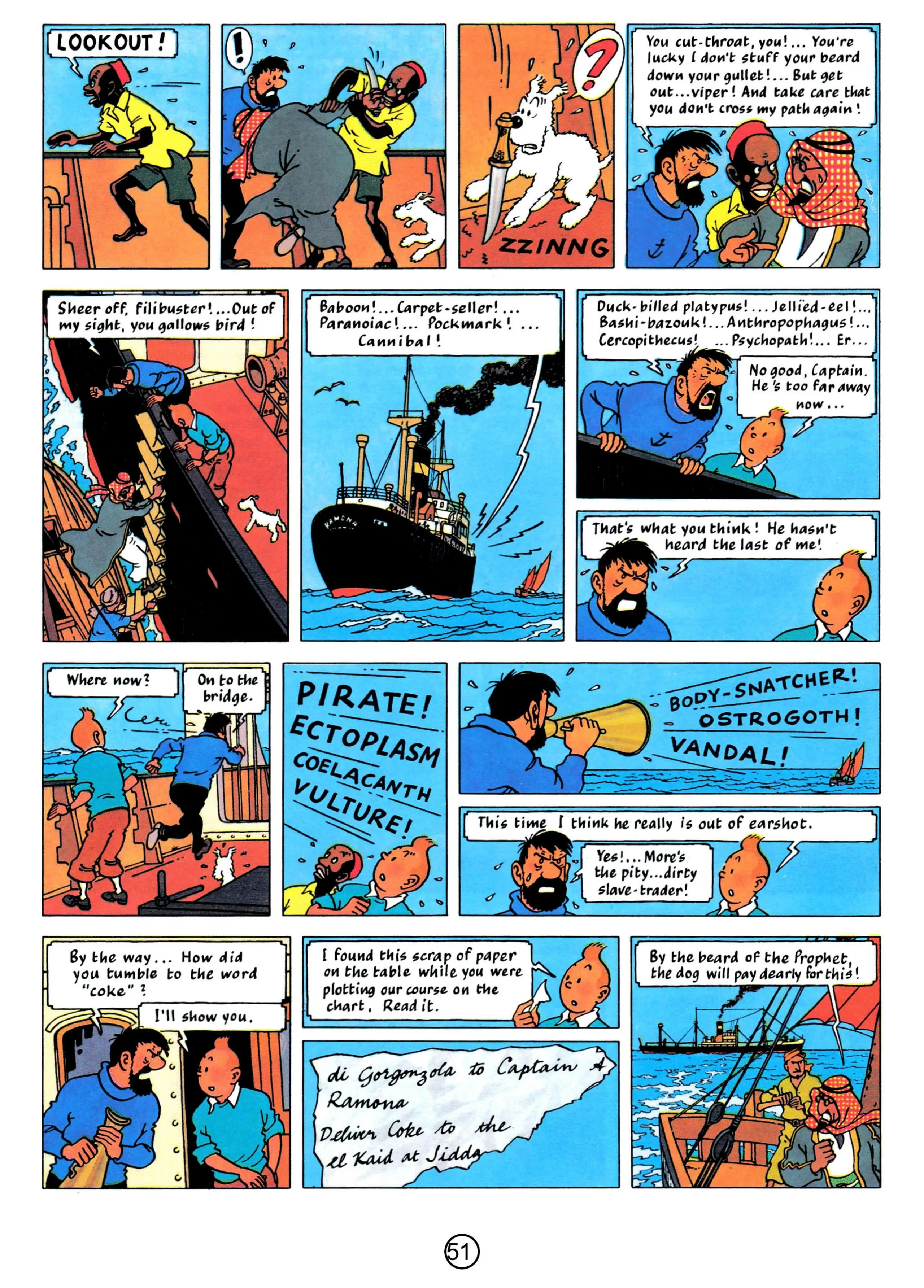 - Hergé, 1958, The Red Sea Sharks, The Adventures of Tintin, Book 19