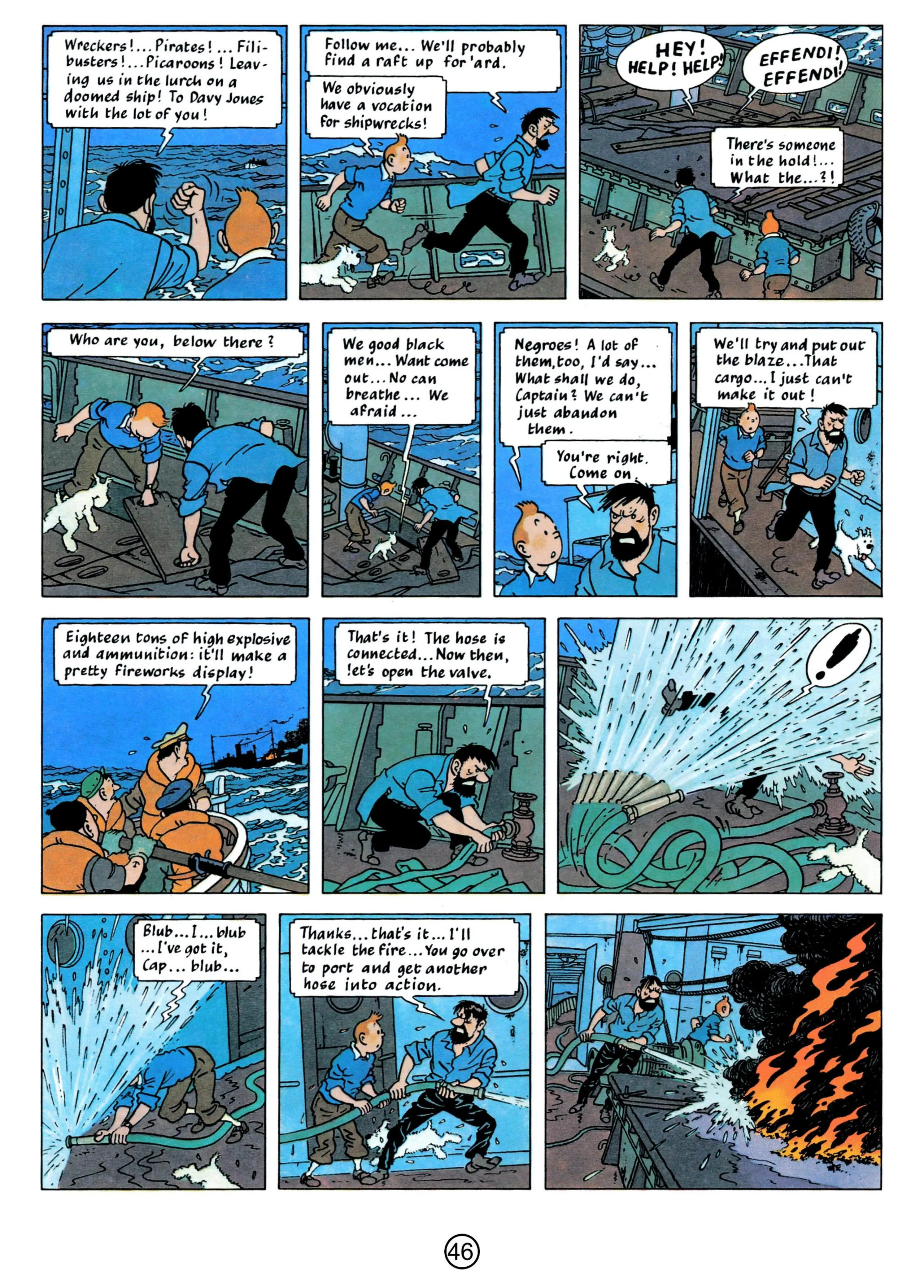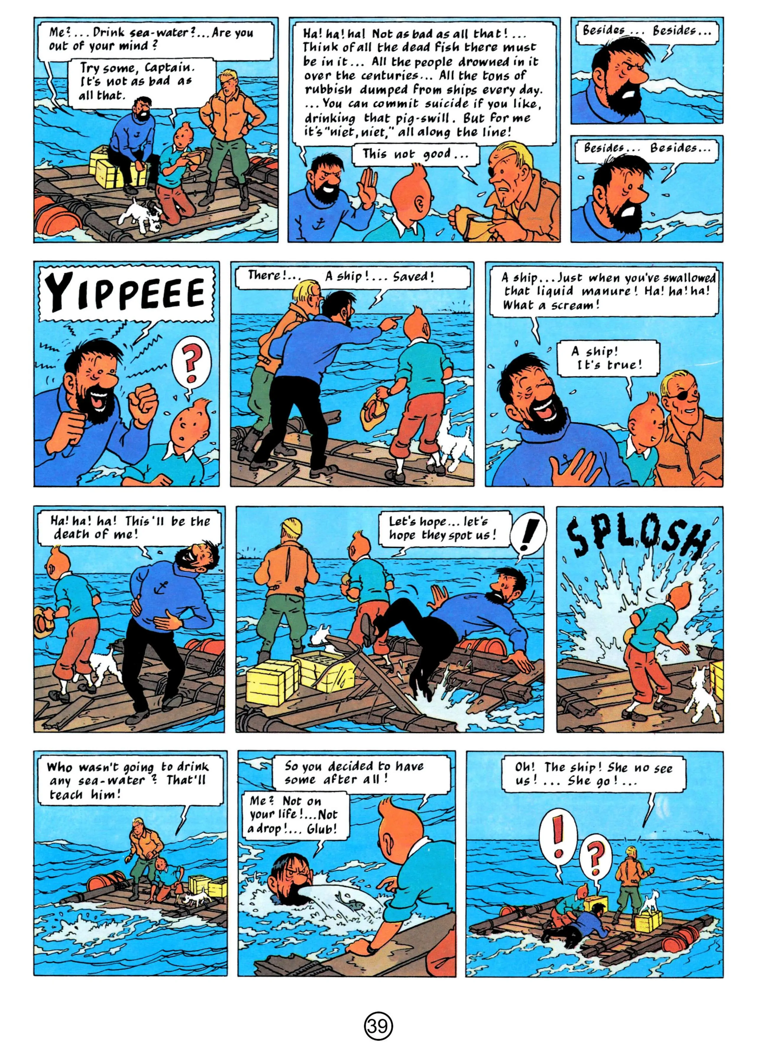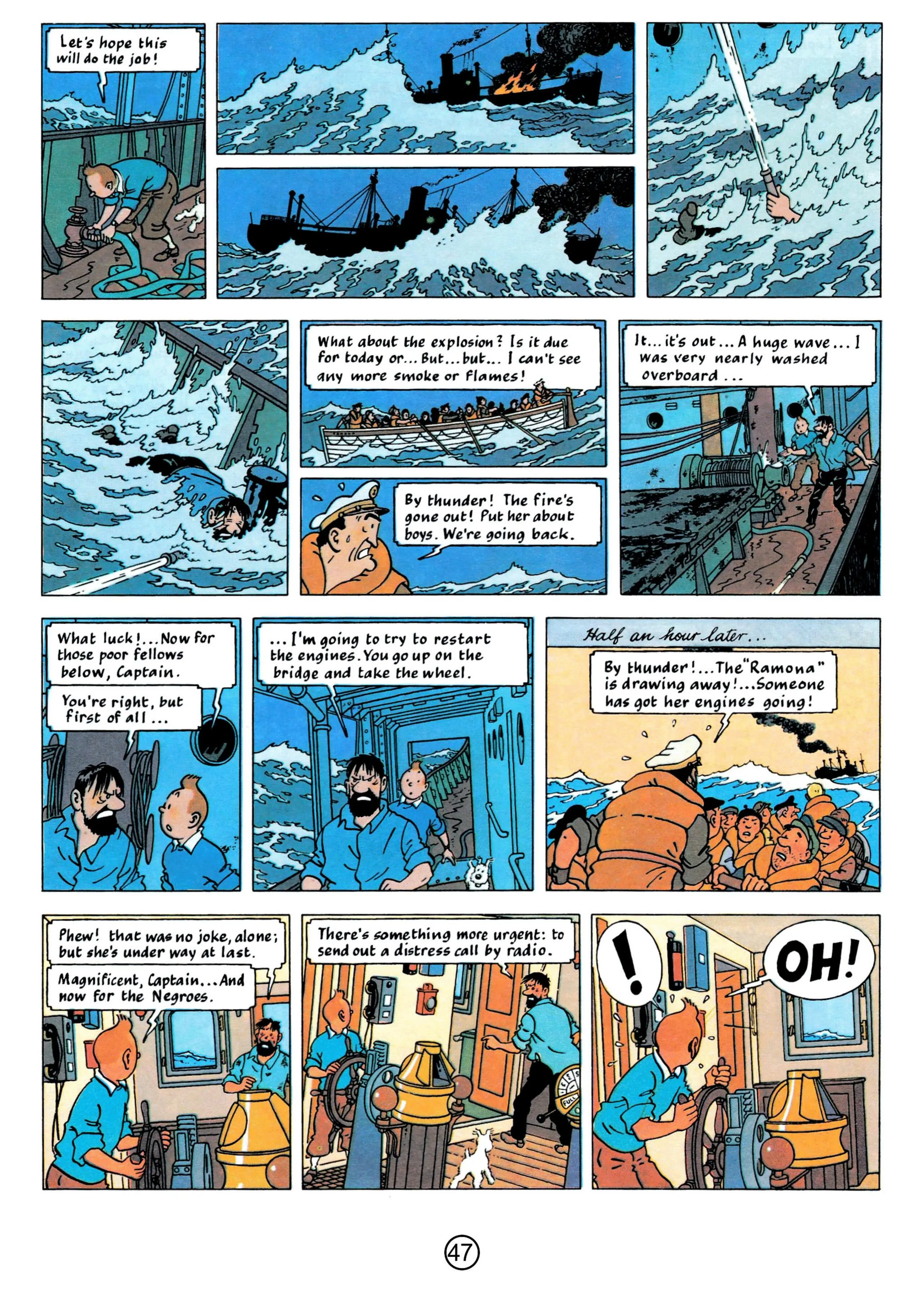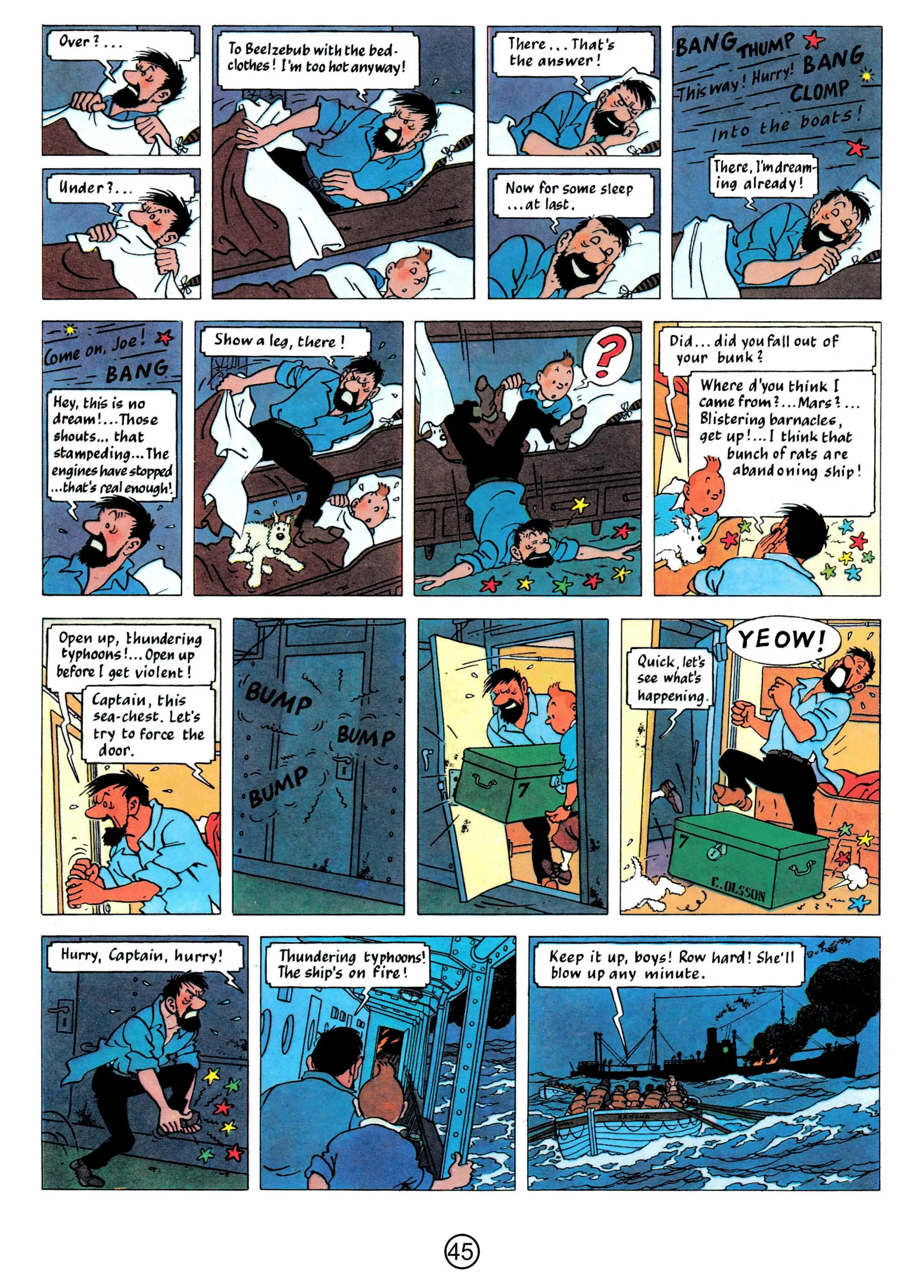 - Hergé, 1958, The Red Sea Sharks, The Adventures of Tintin, Book 19