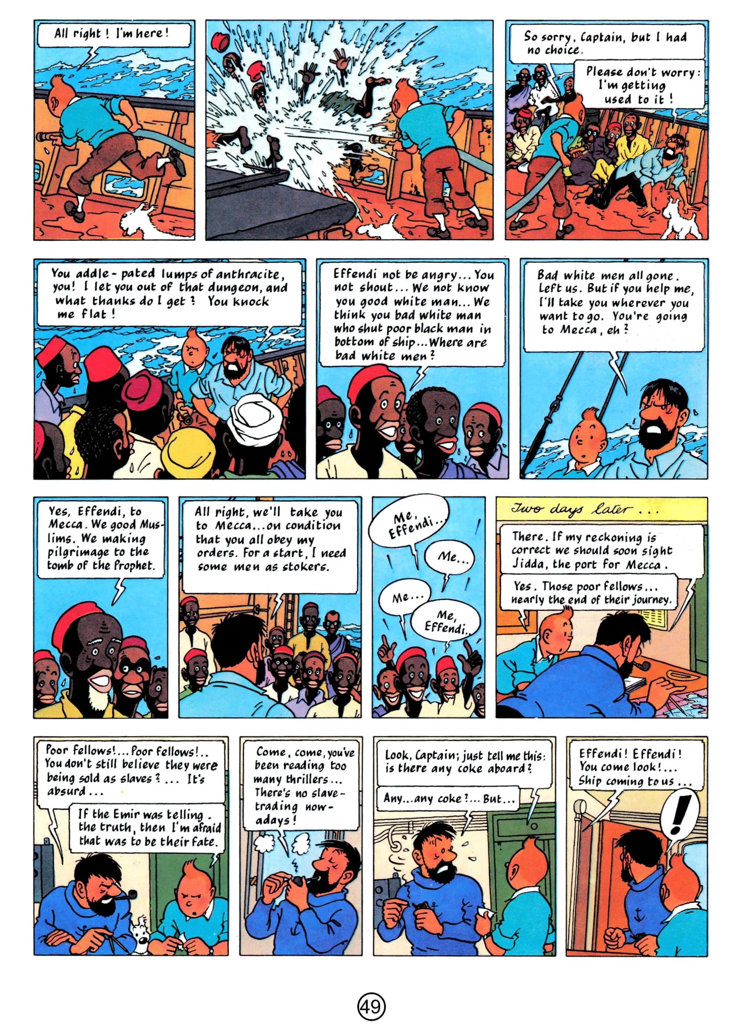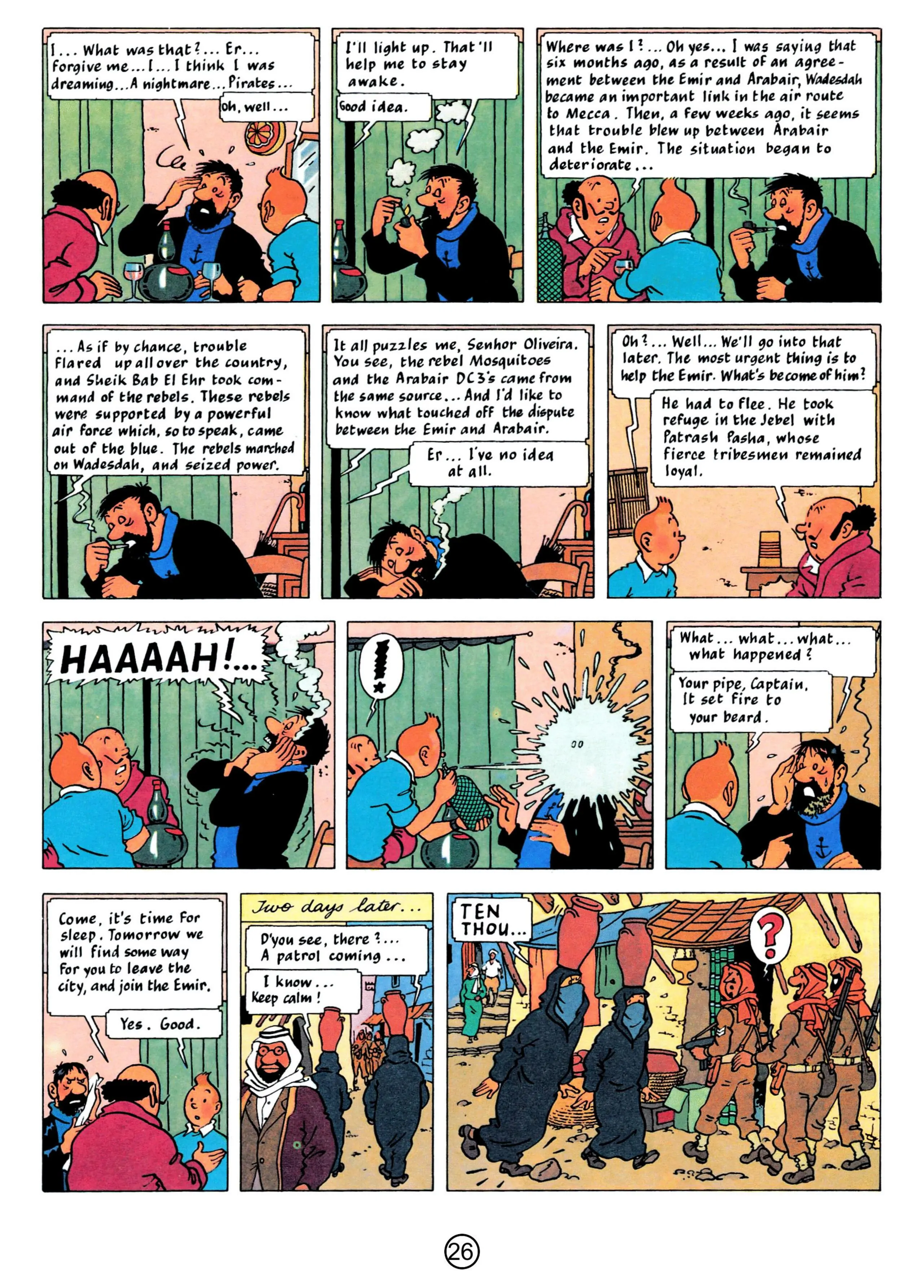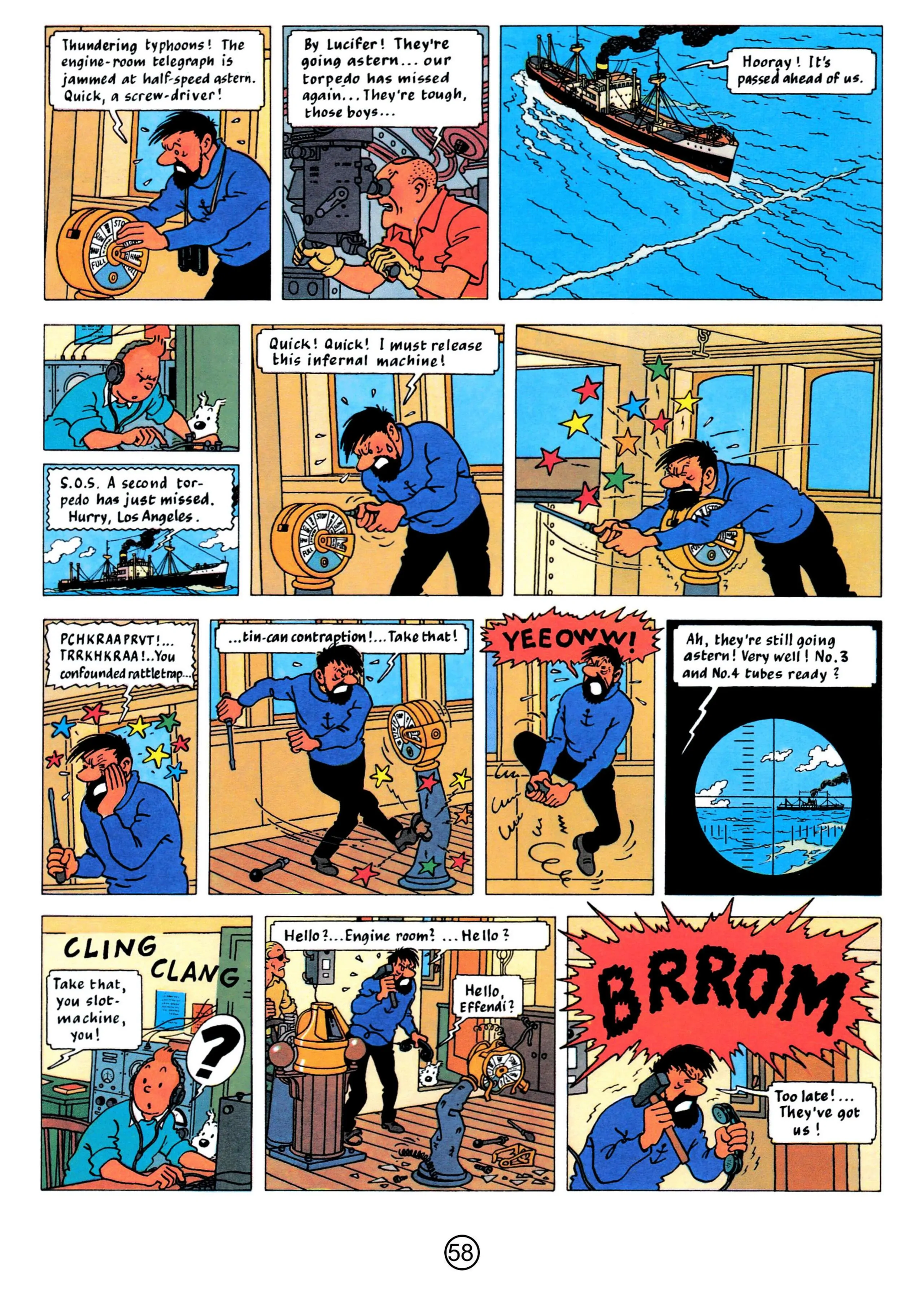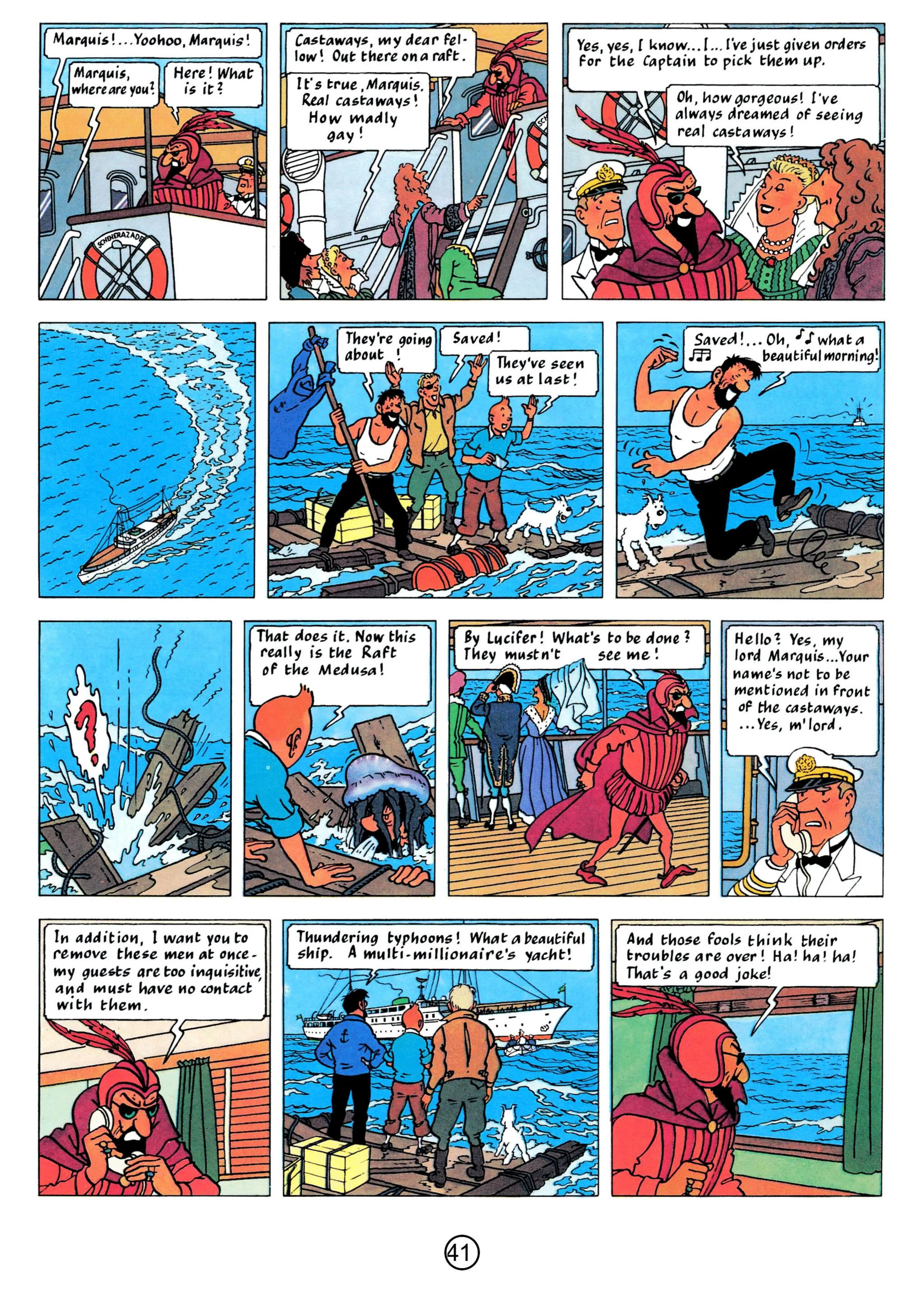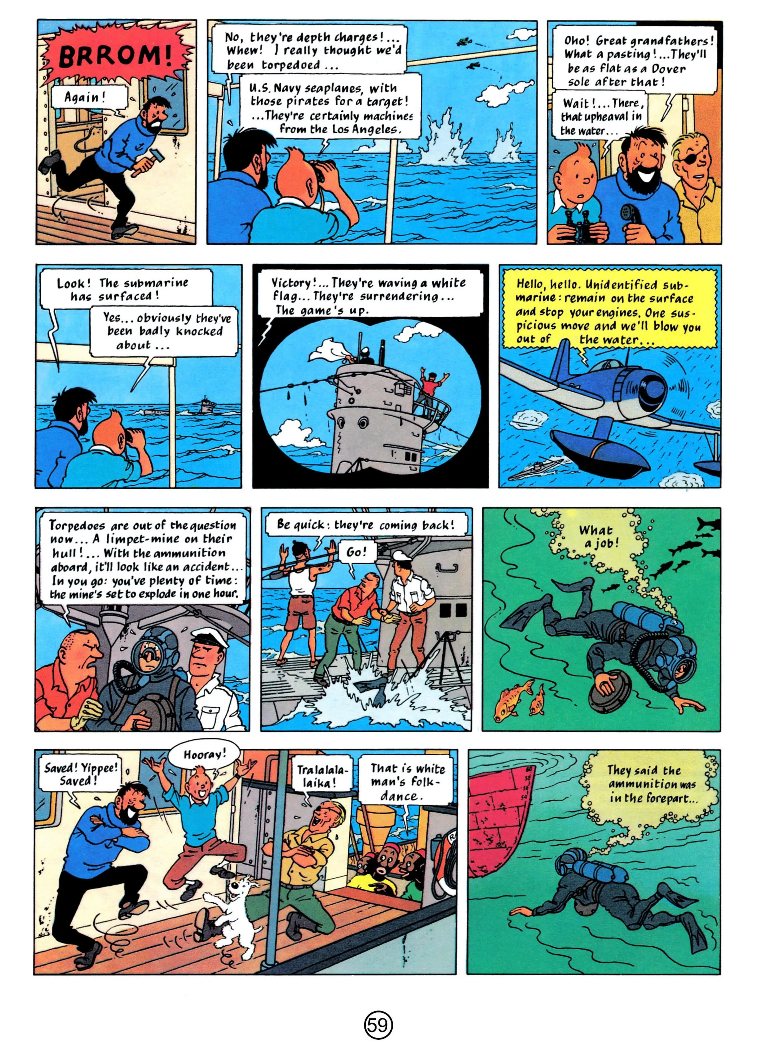 - Hergé, 1958, The Red Sea Sharks, The Adventures of Tintin, Book 19